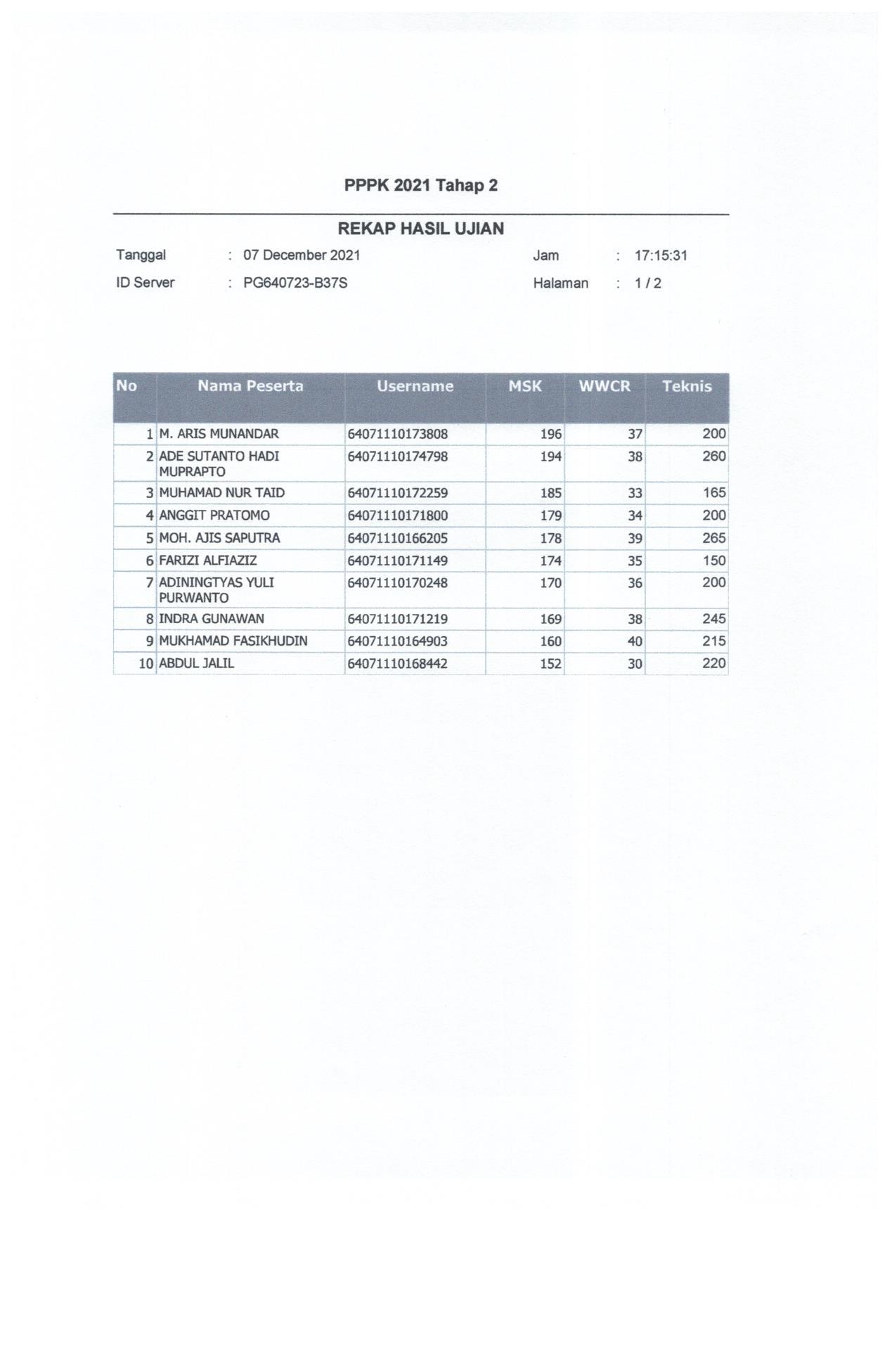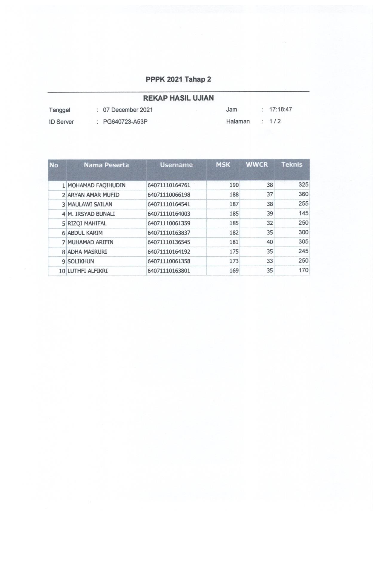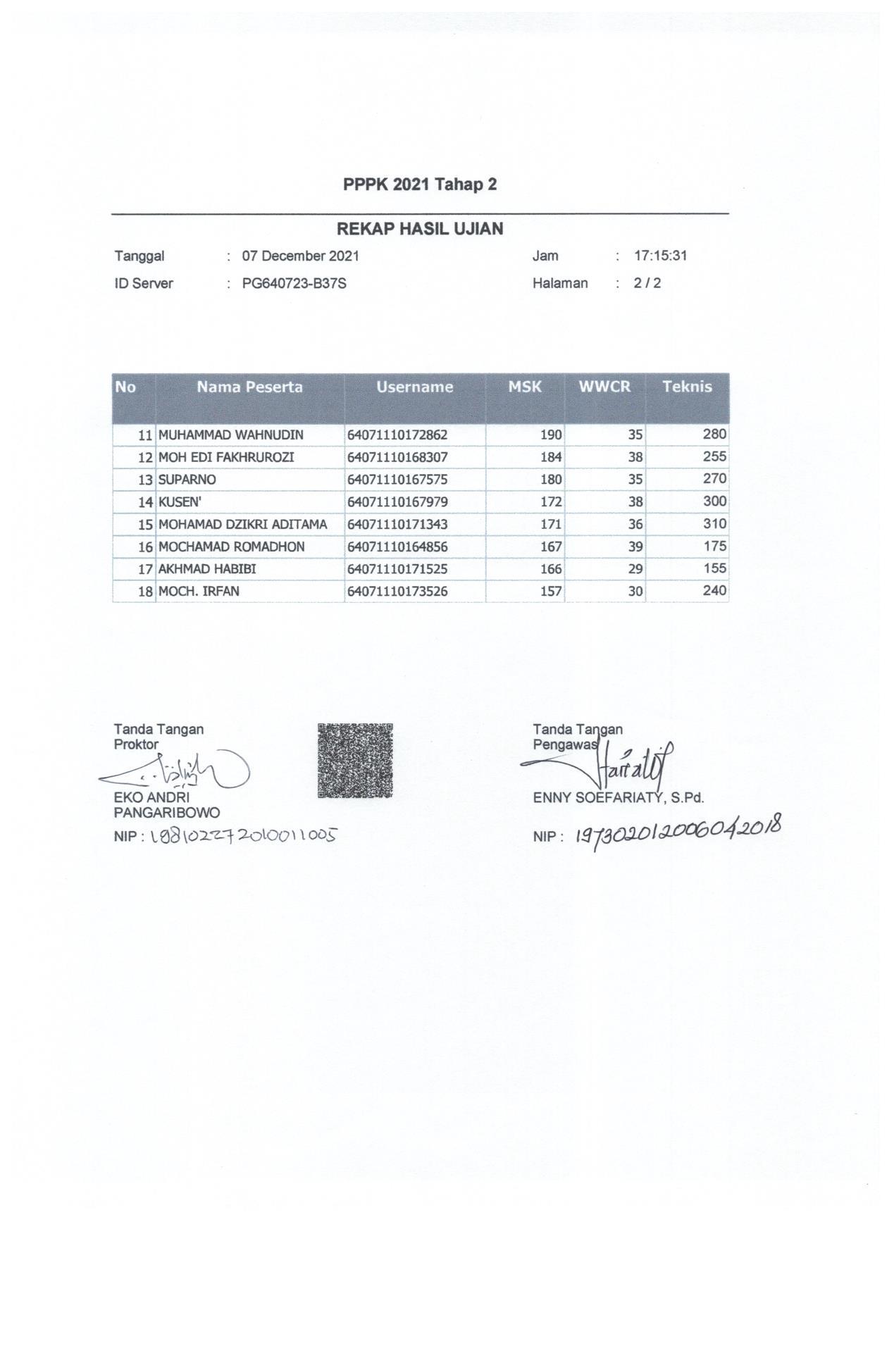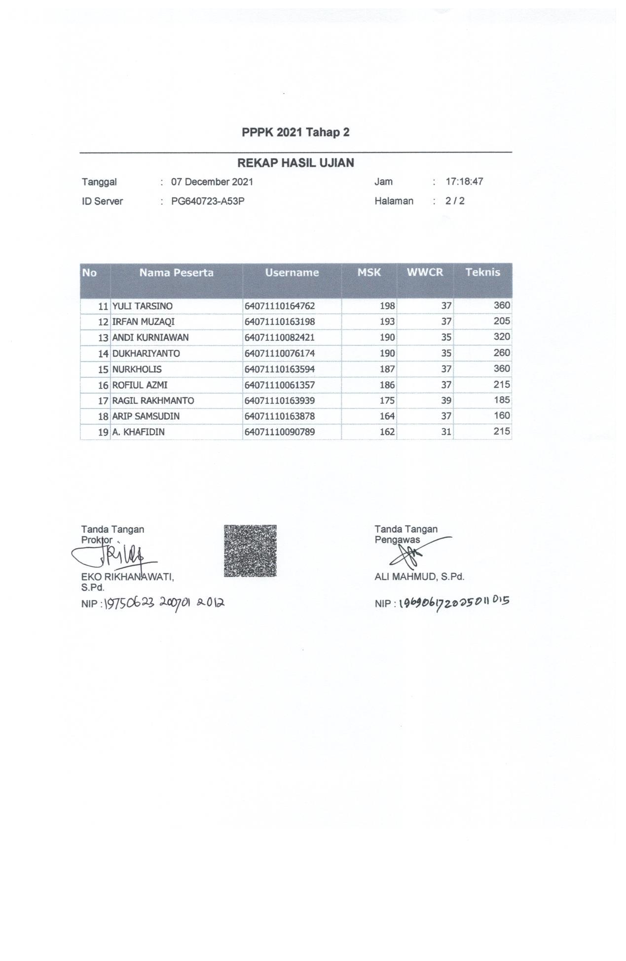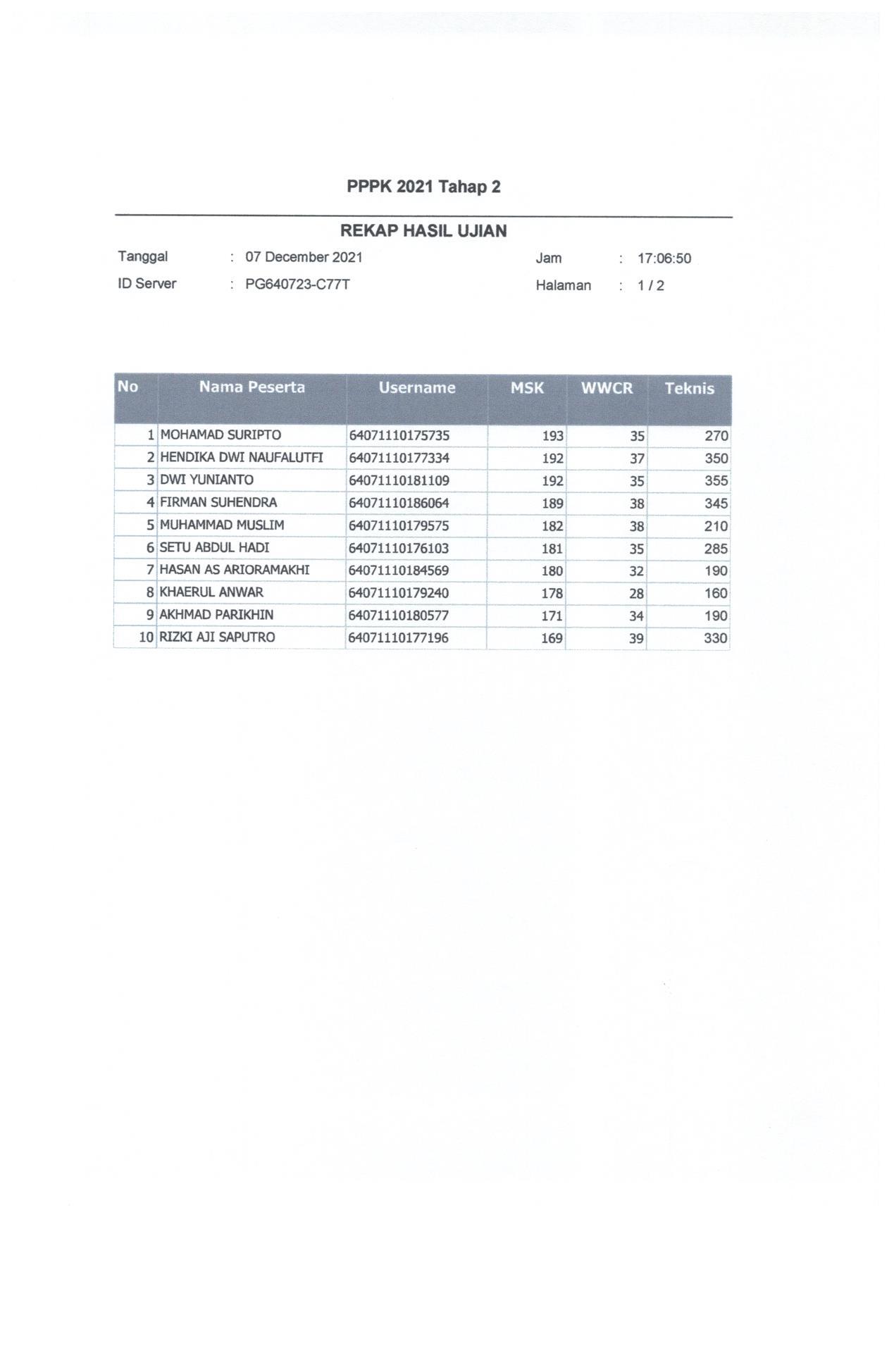 Hasil Nilai PPPK Tahap 2 Hari 1 Sesi 2