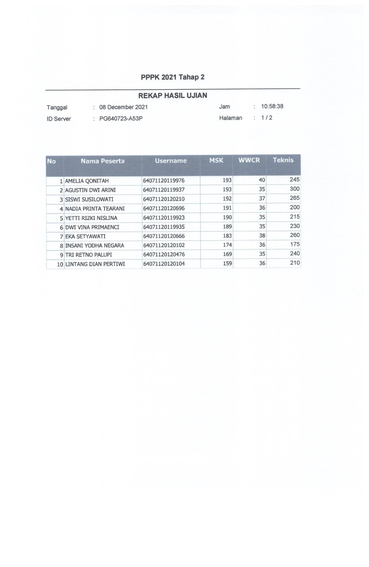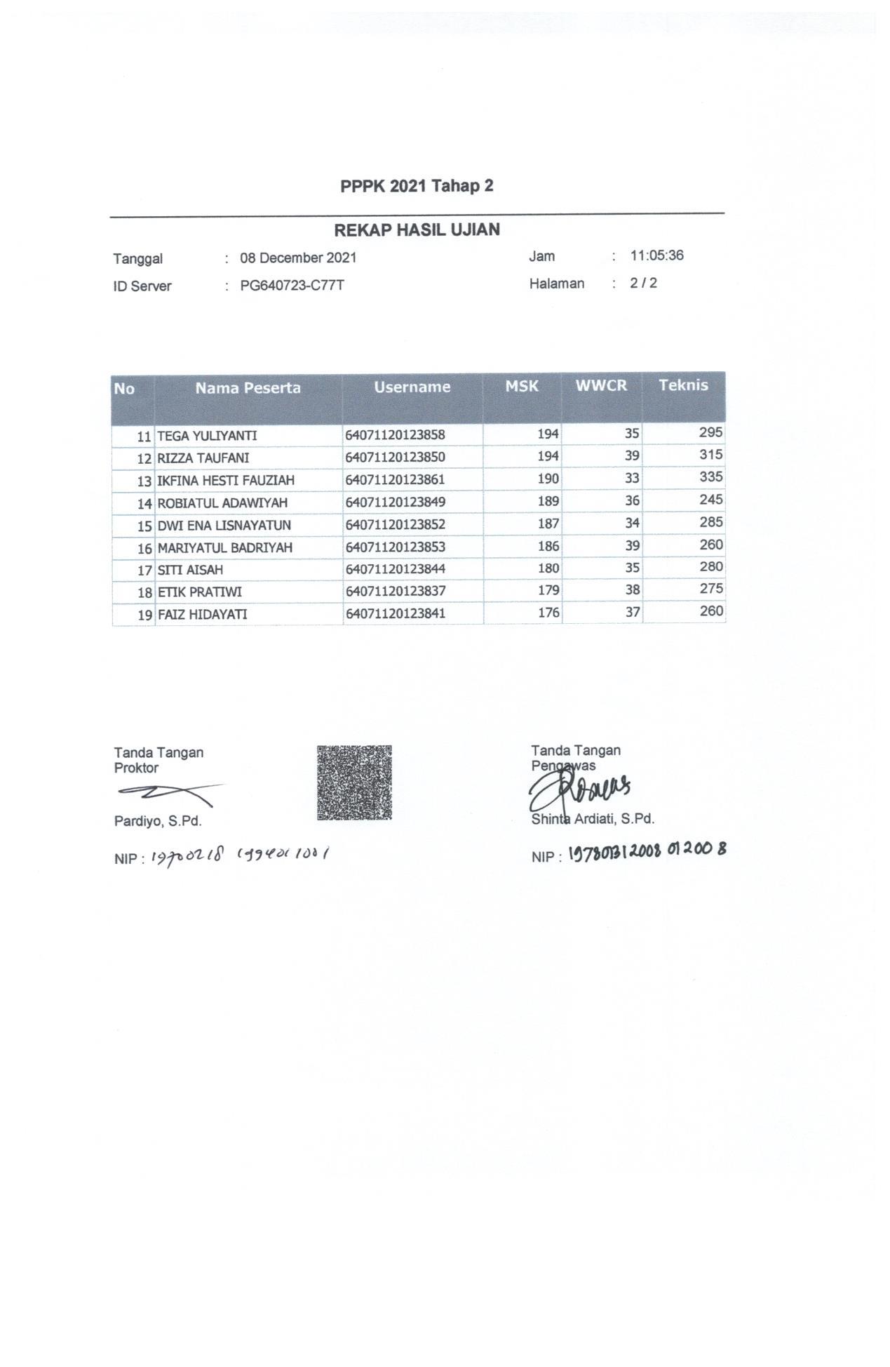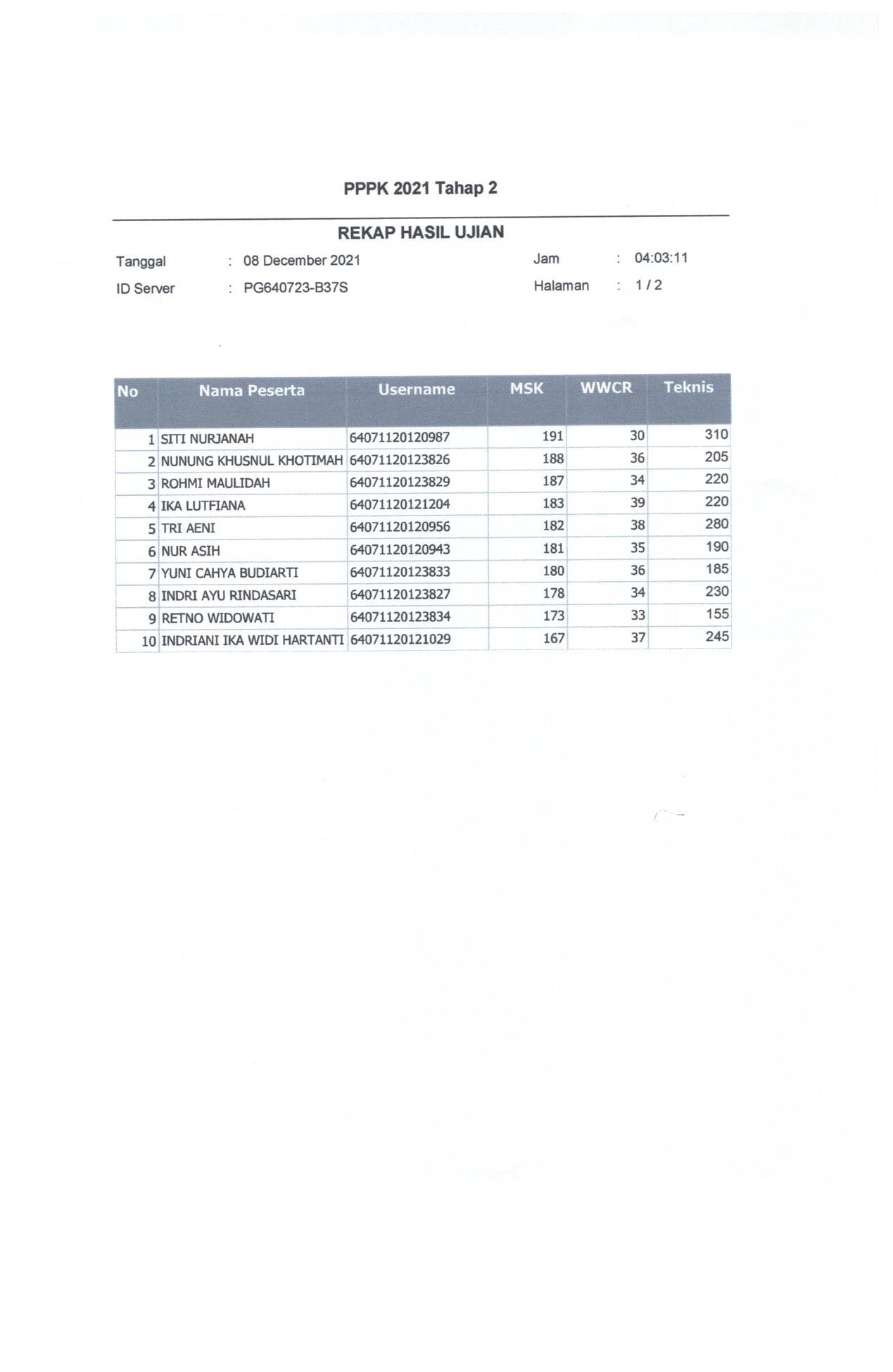 Hasil Nilai PPPK Tahap 2 Hari 2 Sesi 1