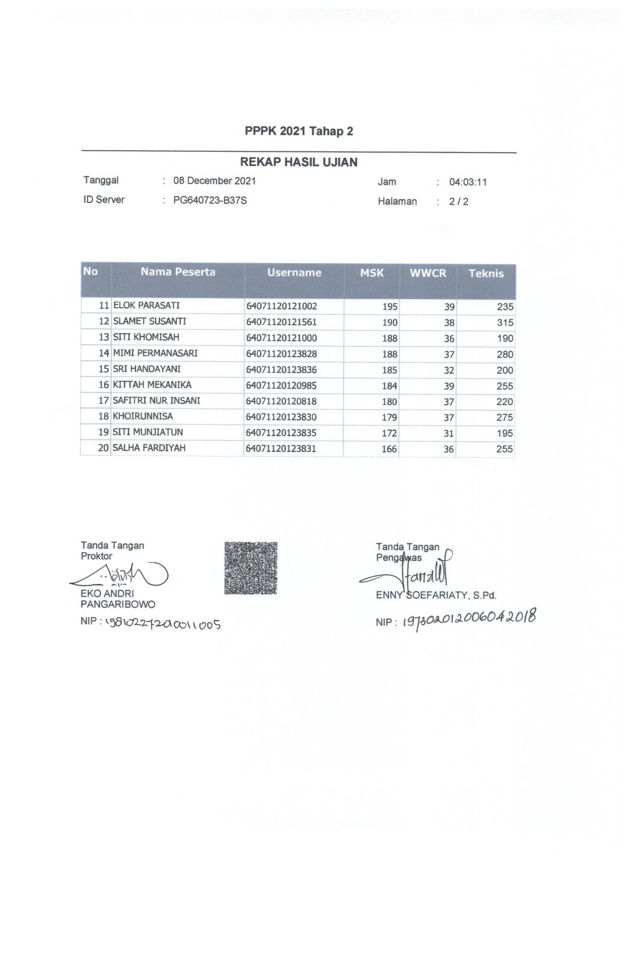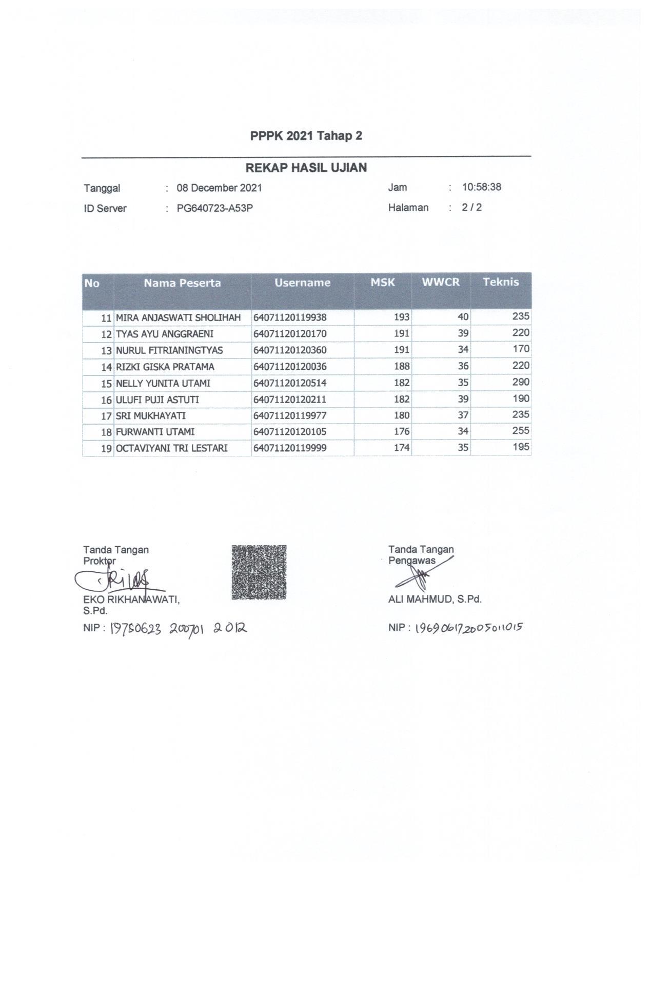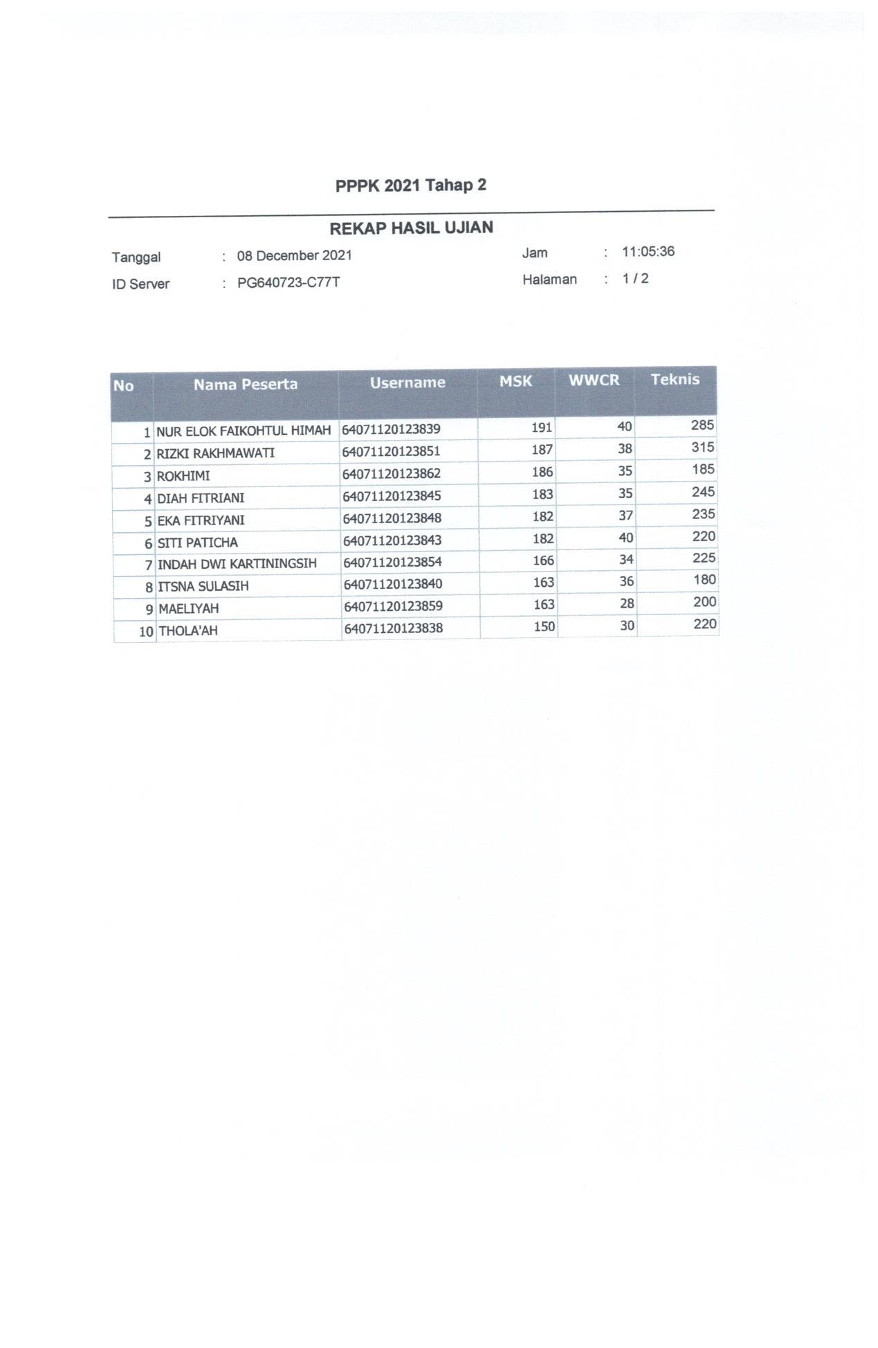Hasil Nilai PPPK Tahap 2 Hari 2 Sesi 1