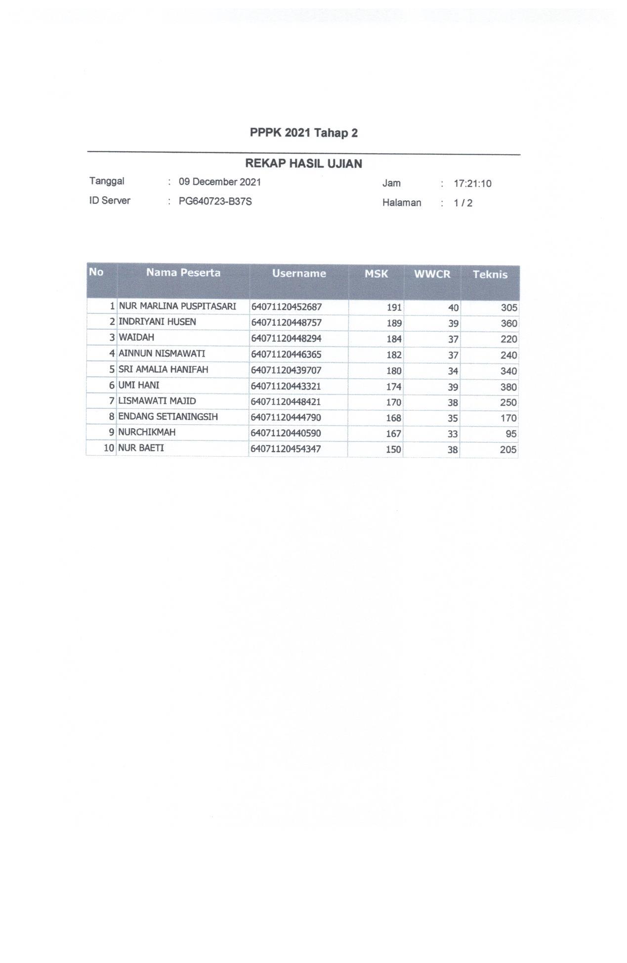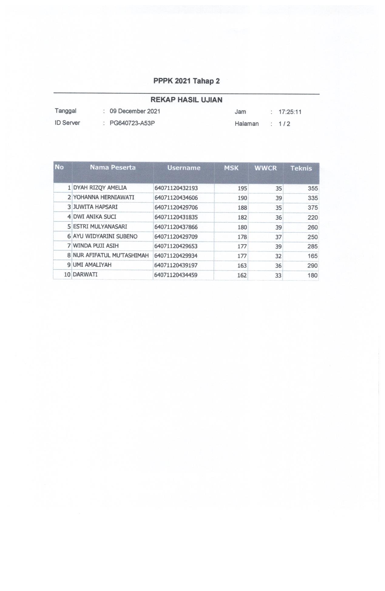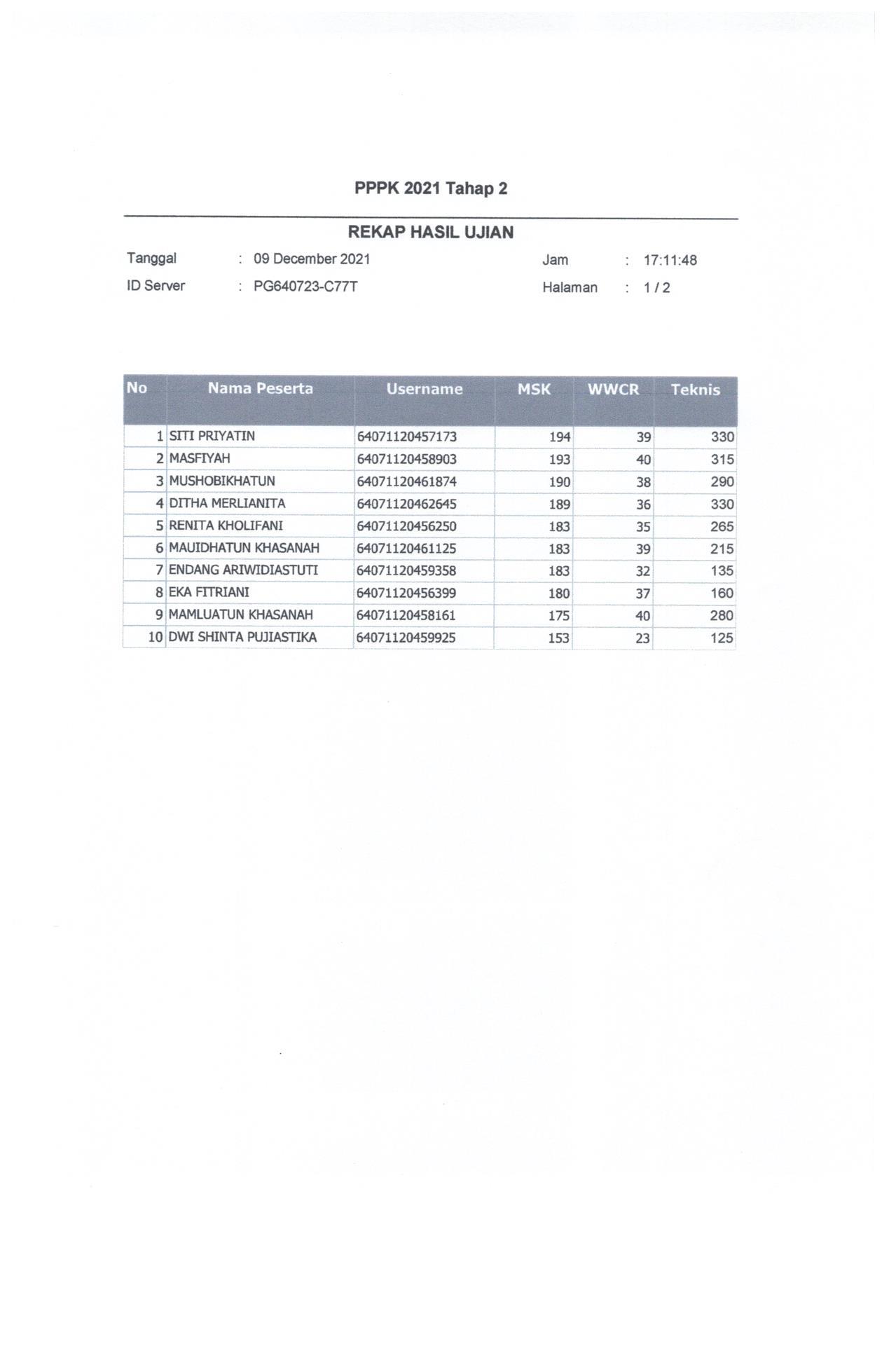 Hasil Nilai PPPK Tahap 2 Hari 3 Sesi 2