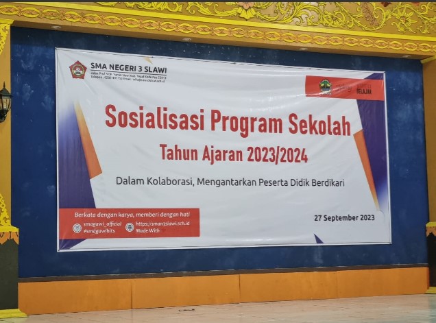 Rabu (27/9) telah dilaksanakan Sosialisasi Program Sekolah (SPS) bagi orangtua atau wali murid fase E (kelas X). Kegiatan dilaksanakan di Aula SMAN 3 Slawi dari pagi hingga siang dan berjalan lancar.
