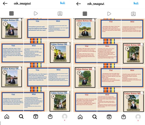 Pemilihan Ketua OSIS dan MPK dimulai pukul 07.30 s.d. 17.30 WIB melalui Web yang sudah di sediakan dari jauh hari.Sebelum Pilketos dimulai masing-masing kandidat diwajibkan untuk membuat pamflet dan video orasi yang berisi Program Kerja Unggulan video dan pamflet tersebut dapat dilihat di Instagram: @osk_smagawi