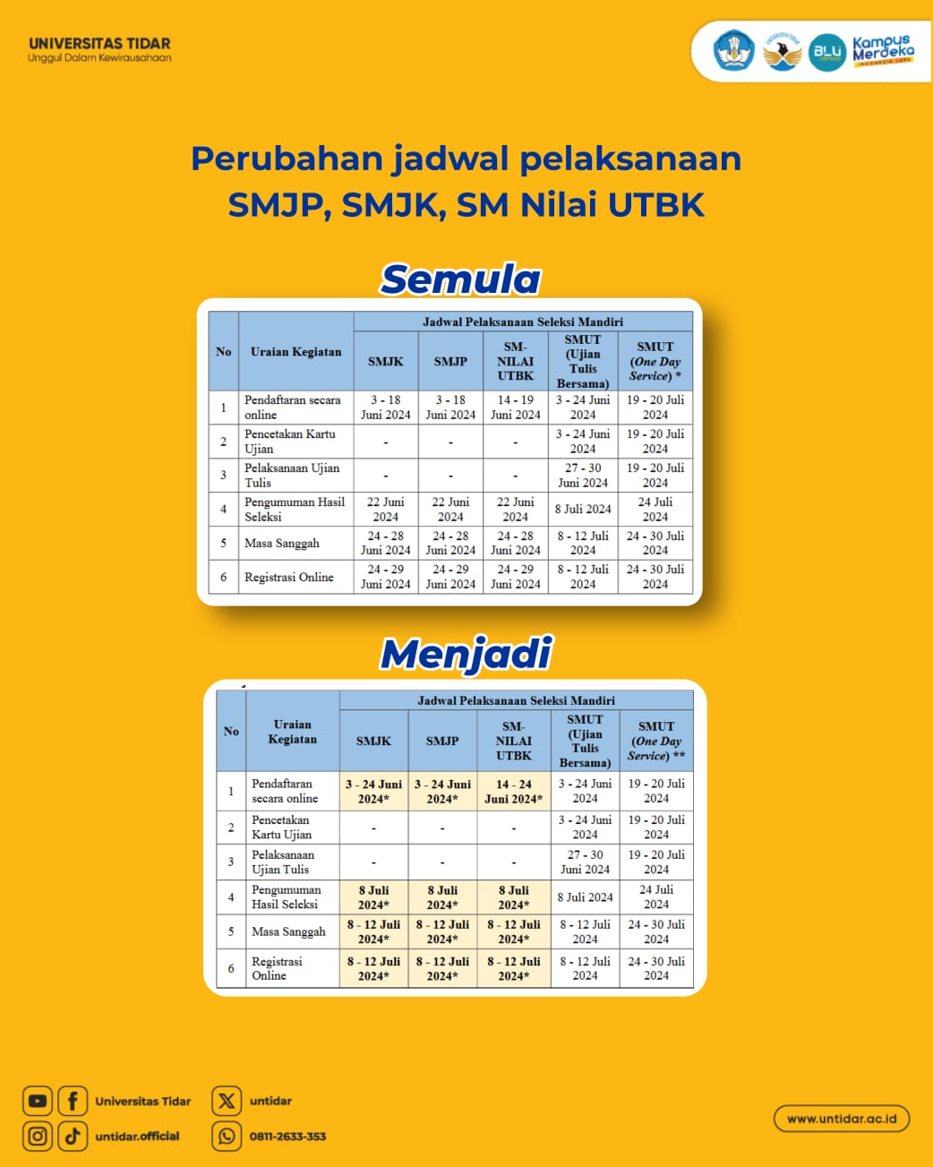 Pengumuman Seleksi Jalur Mandiri Untidar