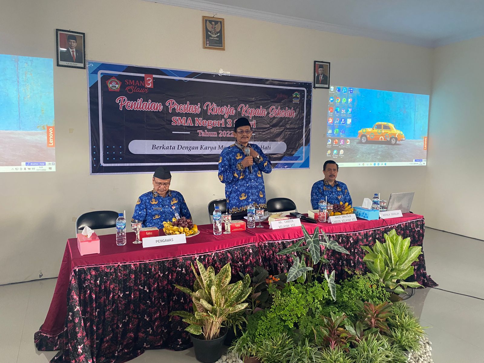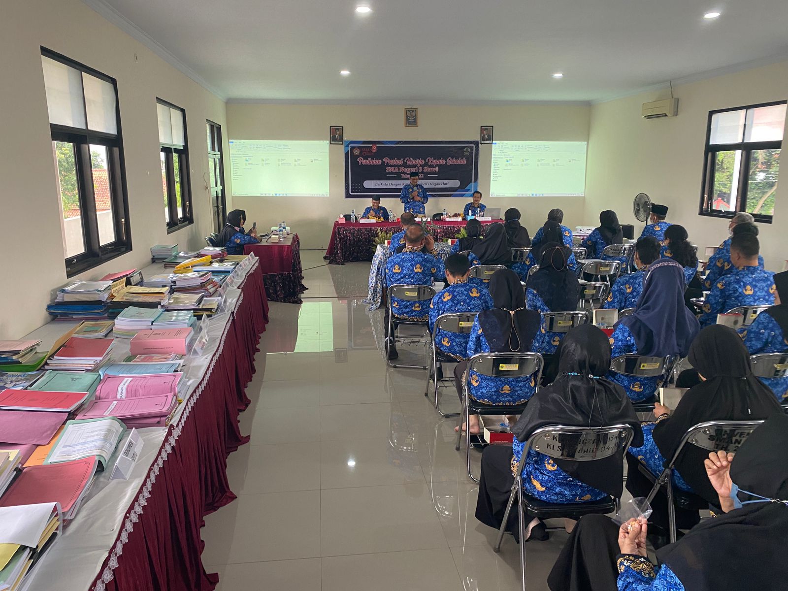 Kamis (17/11) diselenggarakan PPKKS, Penilaian Prestasi Kinerja Kepala Sekolah. PPKKS merupakan sarana penilaian bagi kepala sekolah terkait tugas pokok dan fungsinya dalam menjalankan roda pelayanan kependidikan di sekolah. Tim asesor dalam PPKS terdiri atas pengawas pembina SMA.