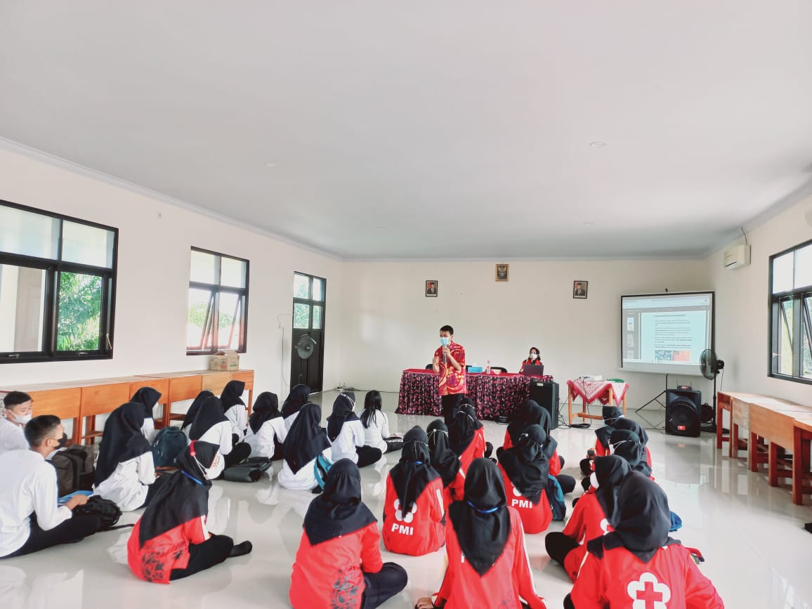 Pihak PMI menyampaikan materi mengenai P3K. Materi yang disampaikan dipadupadankan dengan praktik penanganan P3K pada siswa. Hal ini dirasa akan lebih memberikan gambaran nyata pada anggota PMR dalam memberikan pertolongan pertama pada kecelakaan.